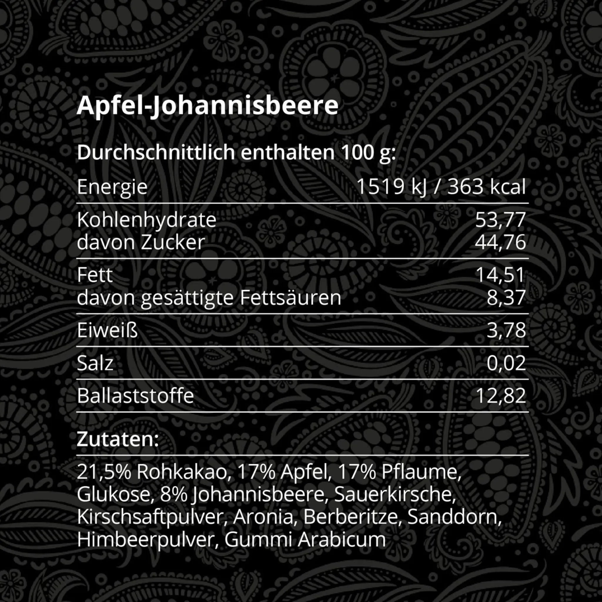 Die Takamanda Kakao Apfel- Johannisbeere Pearls vereinen fruchtig saure Noten von regionalem Apfel und schwarzer Johannisbeere mit dem kräftigen Geschmack des Rohkakaos zu einem intensiveren und ausgeglichenen Geschmackserlebnis. Dafür wird jeder Takamanda Kakao Pearl in Freiburg handgefertigt. Durch die schonende Trocknung und sorgfältige Fermentation sind die Takamanda Kakao Pearls zudem darmfreundlich.