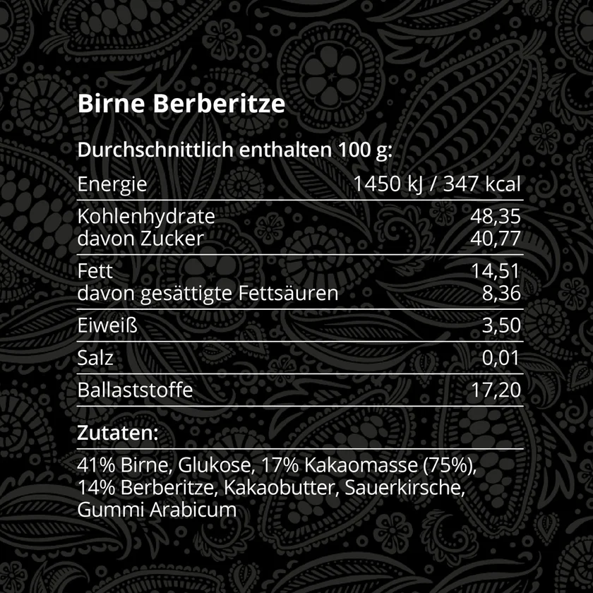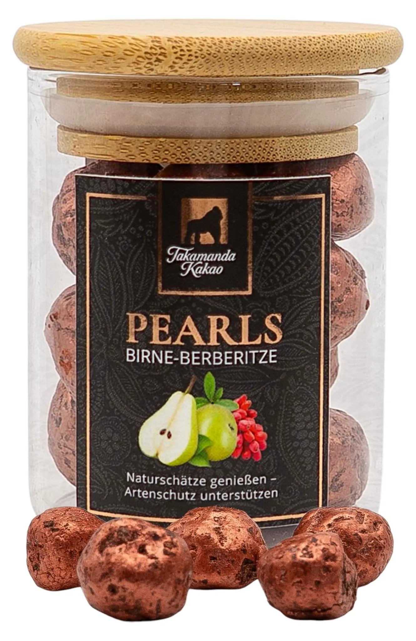 Die Takamanda Kakao Birne-Berberitze Pearls vereinen fruchtige Noten von regionaler Birne und Berberitzen mit dem kräftigen Geschmack des Rohkakaos zu einem intensiveren und ausgeglichenen Geschmackserlebnis. Dafür wird jeder Takamanda Kakao Pearl in Freiburg handgefertigt. Durch die schonende Trocknung und sorgfältige Fermentation sind die Takamanda Kakao Pearls zudem darmfreundlich.